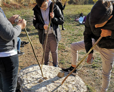 Während des Workshops dürft ihr verschiedene Dinge ausprobieren, die in fernen Zeiten zur Bewältigung des steinzeitlichen Alltags notwendig waren. So könnt ihr euch darin versuchen aus Getreide Mehl nur mit Hilfe von Steinen zu mahlen. Ihr könnt den Umgang mit Feuersteinen erproben und euch Werkzeuge aus Stein (z. B. einen Steinhammer) bauen. Für die Jagd waren damals Pfeil und Bogen sehr nützlich. Lasst uns also versuchen selbst Bögen und Pfeile herzustellen.